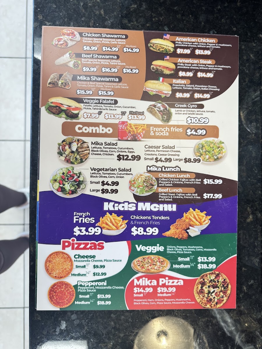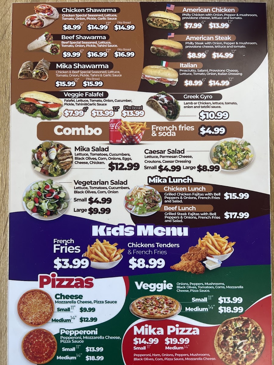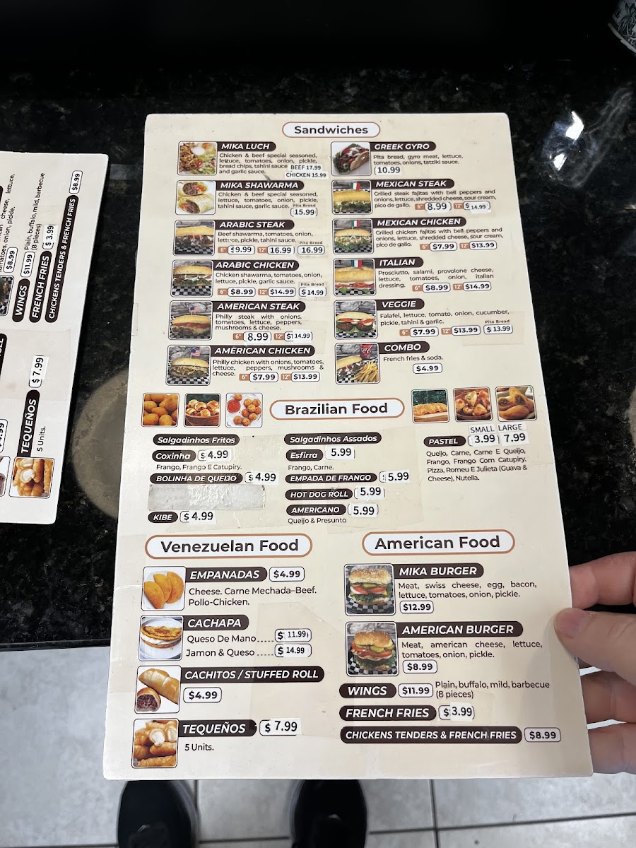 The sandwich section is a great place to explore international flavors. The Mika Pita Bread offers a unique twist, while the Arabic Steak and Arabic Chicken bring bold, savory flavors to the table. For fans of Greek cuisine, the Greek Gyro is a must-try, and the American Steak offers a hearty, traditional option.