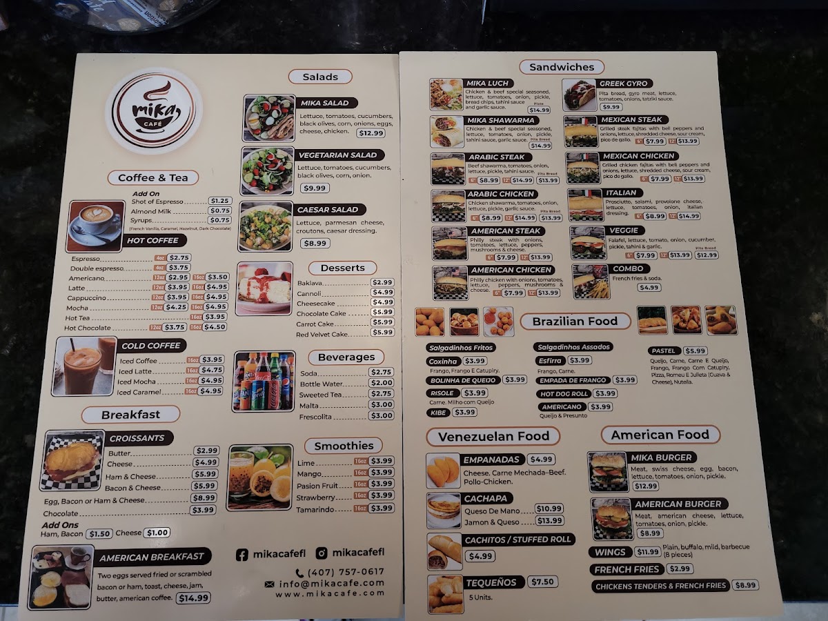 Overall, Mika Cafe's menu offers a delightful blend of fresh salads, indulgent desserts, satisfying American dishes, and internationally inspired sandwiches. Whether you're a fan of bold spices, classic comfort food, or light, refreshing meals, you'll find something to enjoy here.